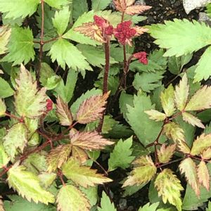 10種類くらいは庭のどこかにいるはずの大好きなアスチルベ🌿 濃赤のアスチルベファナルが昨日の豪雨もまるでなかったかのよう〜😊 後ろの方では淡いグラデーションのアスチルベビジョンインフェルノも色づいてきました♪