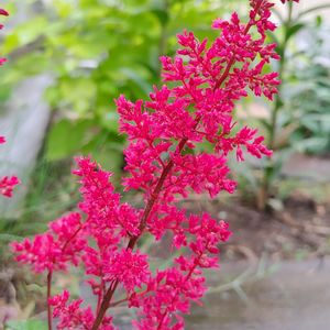 梅雨のお庭の端っこにアスチルベさんがひっそりと元気に咲いています🌼想像していたよりも鮮やかな赤色なので驚いています(今年の春から仲間入り)🎵梅雨の憂うつ気分を吹き飛ばしてくれる元気な赤💕
