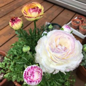 ラナンキュラス❤️ 一つのポットを購入して植えたのですが、気がついたら2色✨✨ 得した気分です🎵🎵🎵🎵