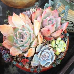 No.94 寄せ植えピンク ピンクも鉢にピンクに紅葉した子が可愛い❤️