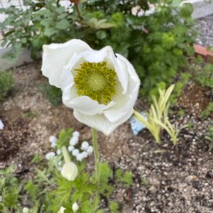 こんにちは😃 今日も北関東の平野部は暑い一日でした🥵 先日山野草店から迎えた春明菊または春咲き秋明菊? 🏷️には秋明菊とありましたが、おそらく アネモネ バージニアナではないでしょうか😊 (商品名ジャパニーズアネモネ 『グリーンベリー』) 清楚でキレイなお花です💕