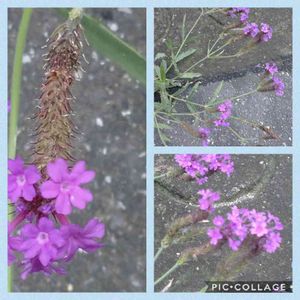 バーベナリギダ 最初鉢植えだったのがこぼれだねで門扉の外で、アスファルトを蹴散らして毎年咲きます。初夏の頃から切り戻しを繰り返し、今も良く咲いてます。 大好きな花の一つです。