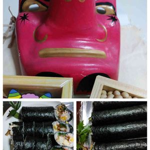みなさんのpic見て、今日節分👹だった!と気づくボケボケさんです! 冷凍してたいくらを解凍して、うちにある野菜とかを駆使して何とかできたよ、恵方巻き✨ でもね、すぐ顎関節症になるのでそのまんまガブリは辞めておきます💦 どうやったら、お花とかうまく出来るのかな?クラシル見ながらやったけど、あの小さいの巻き寿司はどうやって巻くの? 難しすぎて…事細かく書いてる本か何か欲しくなっちゃった! 短い具はどうやって繋げておくんだろう… ま、いいか! お腹すいたので、じゃなくて今年も無病息災を祈って南南東…テレビの方角だな… を見ながら、無言でいただきまーす✨ これ、味変でキンパ風のタレ作って食べるの好きです。 さぁ!コロニャよ去れ! とうっ‼.・*・:===( ε:)☆))Д´)・.:゚。