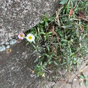 エリゲロン;源平小菊(和名) 学名: Erigeron Karvinskianus 原産地:南アメリカ ハルジオンや、ヒメジョオンの仲間は、200種ほど、原産地は北アメリカに多い。
