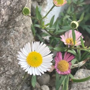 白く咲いて時間が経つと、ピンク色に変化する、可愛いキク科のほぼ雑草扱いの花です💚 私には心のビタミン剤💕