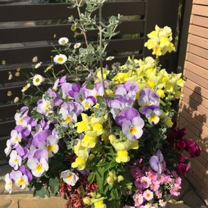 春の寄せ植え🌼💜🌸 頭でっかち🤭モリモリしてます💕✨ 今日のお花 サクラソウも所狭しと…😅🌸 長いこと楽しませてもらったけど もうそろそろかなぁ まだいけるかなぁ もう少し頑張ってほしいなぁ(*›◡︎‹*)♡︎ʾʾ