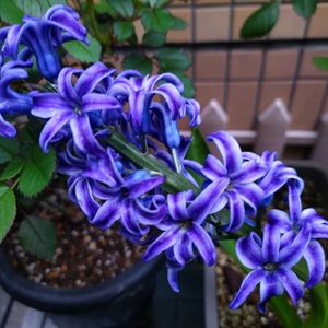 ヒヤシンス、紫色が咲きました😊 昨年より、花が多く重たいせいか傾いています😅