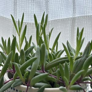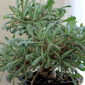 オトンナ ユーフォルビオイデス 実生株です。寒い日も多いのですが、屋外で元気に育っています。 葉で見にくいですが、段々と枝分かれしてきました。