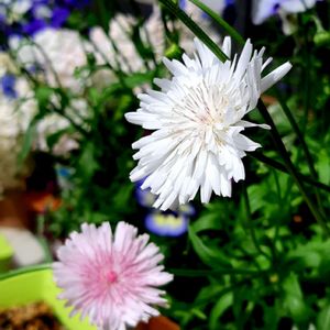 こんにちは~ 取り急ぎupしましたぁ~🎶💕 モモイロタンポポ💖 シロバナタンポポ🤍咲きました~🎶💕 らにいーさんからの種を蒔いて発芽させて楽しみにしてました~。 でもドジってなん株かダメにしてしまって ……トホホ( ×ω× ;)今では1株だけ何とか元気😓😂 そしたららにいーさんが心配してくれて ふた株送ってくださいました~😆💕 🌱✨🌱✨成長が早い早い💭 今日は一気に咲いてくれました~ꉂꉂ📣✌️😻 介護疲れ吹っ飛びまくり~ꉂꉂ📣 ヤタ───ヽ(〃∀〃)ノ───♪ らにいーさん(*´∀人) ありがとうございます♪🙌💕✨