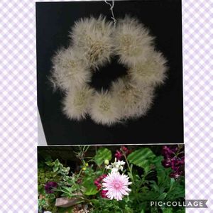 まねっこして、初めて桃色タンポポのリースに挑戦🔰 形が歪なのはご愛嬌😁