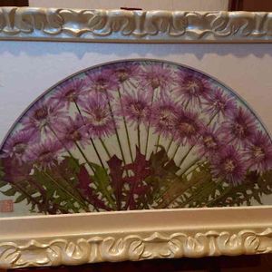 今日の午後、押し花サロンへ。 花材→桃色タンポポ タイトル→暖かみの有る心