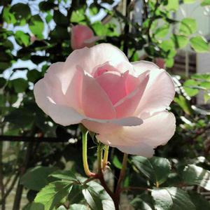 バラのローズドゥグランヴィルさん、我が家に来て初開花となりました! 桜のような薄ピンクです。 昨年の夏のセールの時にバラの家さんから購入した大苗でしたが、秋は一切花をつけずに冬を越しての開花です。 香りも素敵です。