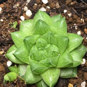 ハオルチア属 エメラルド とっても綺麗なエメラルドグリーンです。光沢もあり、ロゼットが綺麗ですよね〜ぇ。 お気に入りです。緑の薔薇といっていいでしょうか‼️❣️ 自己満足(夫婦で)