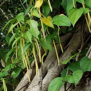 木に巻きついて蔓性なのかな? この子は誰ですか? 大きい葉だと10センチ以上の葉です!
