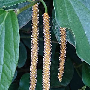 フウトウカズラ(風藤葛)のお花。 秋〜冬、赤い実がなります。 コショウ科コショウ属の在来種。 辛み成分を含まないため、コショウの代用にはならないそうです。