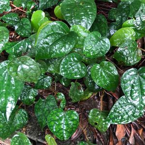 日陰にコショウ科のフウトウカズラとシダ ツヤツヤ テリテリ 2019.12.15 撮影 三浦半島