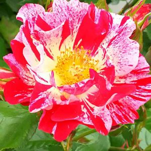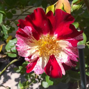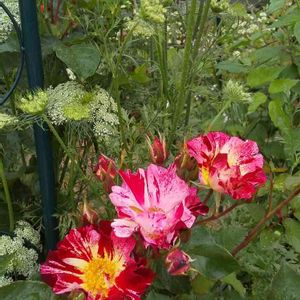 フォース オブジュライ🌹 赤色に白の鮮明な絞り模様💕 クライミングローズです。 房咲きでたくさん咲くと、一面華やかになります☺️