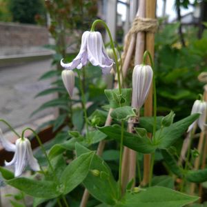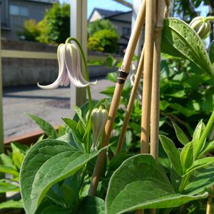 木立性クレマチス インテグリフォリア系大観の二番花 バレリーナが踊っているように 風に揺られて かわいらしく咲いてます 去年はうっすら紫が入っていたのに今年は白い