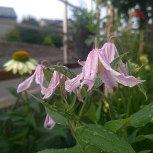 昨夜は28℃の熱帯夜でした。ここまで気温が下がらない夜は初めてです💦更に雨でじっとりです☔アーツーイー…ι(´Д`υ) 今朝のClematis┈┈┈┈┈┈┈┈┈⿻*.· ❶天心 ❷プチフォーコン 2番花が満開になりました🥰天心は少しお花小さくなったかな?花付きは1番花を上回っているかも🎶 ❸大観 1番花が弱々しく、途中で日当たりゾーンに移動していました。✂後の開花はまだですが、新しい葉っぱをみても前より元気なことがわかります🌿✨ ❹ホワイト・ライト ✂から2番花までの💤期間が最短⌛️返り咲きめっちゃ早かったです!