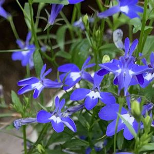 【アズーロ・コンパクト】① 学名:Lobelia'azzurro-compact' おはようございます🎌🪆Happy G.W.❤︎ どうぞ皆様も良き一日を こちらは、ロベリア'アズーロコンパクト'はサントリーが変種したロベリア(Lobelia.学名:Lobelia erinus)の園芸品種です。名前は「ブルーウィズアイ」。ハンギングしました。蝶のような花がふんわりと光り輝く🦋🐈🤍♪ミゾカクシ属✴︎✴︎田畑で見たミゾカクシさんにそっくり☆