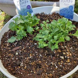 アズーロコンパクト、キンギョソウ。 どちらも何色になるかわからなかったけど、色とりどり、カラフルになりました! もっとさきすすむのが楽しみ! プランターの土が、水やりで流れていくので上から土を追加しました。