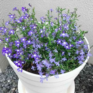 種から育てたアズーロコンパクト。 咲いてみたら、濃いブルーと反対はホワイトでした。 これからが開花本番なので、ドカンと咲いてね!