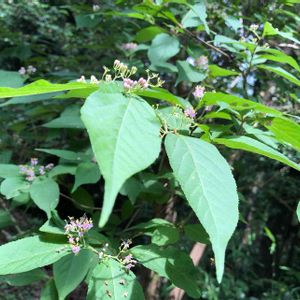 💗💗ムラサキシキブ💗🌿 ムラサキシキブの木がたくさんありました🌳 コムラサキと違い葉っぱも大きくて花はまばらについています💗 💗🌿クマツヅラ科の落葉低木
