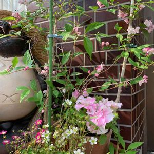 娘の記念樹 ヒメウツギ やっと咲きました🌸 今年は花芽が少ない💧 花芽がつくと玄関に移動🥰 でも、そろそろ植え替え時かな?