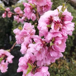 3/19㈬③ 今朝の霙とオヒョウ桃 ゴミ出しついでに撮りに行きました 桃の花もツツジの木も雪被って寒そうです😶🌫️ 白く長方形に写っているのは霙です!名札ではありません😂🤣🤣 でも10時には止んでしまい、今は青空が出てきました〜😄🎶早っ!! 暖かい時間に買い物行ってきま〜す! 明日は彼岸の入り 松陰神社は春の例大祭で、参集殿に檀家が集まり、神主さんの祝詞を聴きます。本物の雅楽を間近に聴けます☺️厳かな雰囲気です 叔父叔母義妹に会うので楽しみです。叔父さんはまだ痛いでしょうね〜ヒビ入ったとこ… 脚ではないから来ると思いますけど… 早めに行ってお墓掃除してお花を供えるためにも、明日の朝ではなく今日お花とお榊を買ってきておこうと思います💐💐🌿🌿 明日が雨や雪予報でなくて良かったです🤗🎶