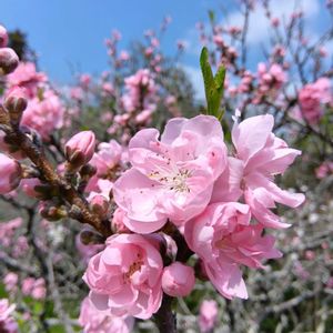 2日前のpicですが😅 枝垂れ桜🌸とオヒョウモモ🌸が 咲き始めました💓 あ〜可愛い😍 3枚目と4枚目は スィートピー アズレウス🩵 2センチくらいのお花🩵ちっちゃくて可愛いけど、ピントが ズレる😓残念😢 5枚目は ヤチブキ🌼 実家の庭にて📱