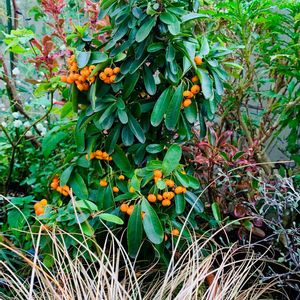 今年のピラカンサ✨ 🔴赤実はまったくみれなく100%🟡黄実でした (ナンテン みたいに白実から赤くなれると思ったが残念🤦🏻♀️) もう鳥さんに狙われてます⚡⚡⚡ お正月後は自由に食べさせるつもりでしたが この食べ物たっぷり秋に手早くこの子に注目するのは意外だ😵💫 どうしよう😹 鳥さん、お正月くらいは飾らせて欲しいよ🥲