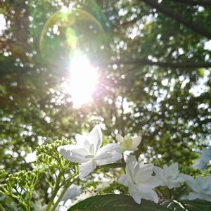 しまね花の郷紫陽花 いろんな種類の紫陽花が地植えされており、ちょうど見頃かな~と思います✨ 木陰になっていて、隙間から太陽が。 空気が澄んでおり、とても美しい世界になっていました✨