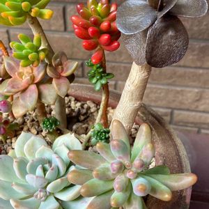 キュービックフロストが、じんわり色づいてきています😊 モロキニエンシスの入ったキノコ🍄 夏にオブジェとして買ってきて、ベランダに運び入れる際に落として割ってしまい…勿体ないので鉢にしました😅