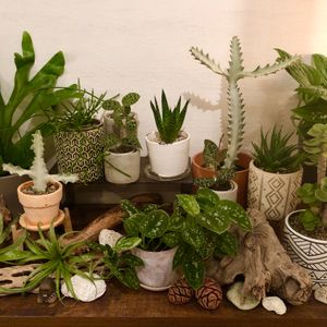 寒くなってきたので外から取り込んだ仲間たちと、もともと中にいた仲間たちが共存しています🤝仲良くやってください😃