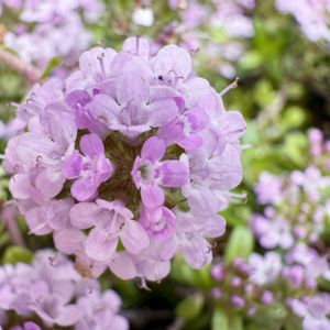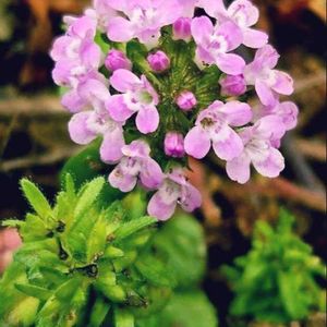 おはようございます。 ヨウシュイブキジャコウソウ。 別名ワイルドタイム。 乾燥した草原などに生えるヨーロッパ、北アフリカ、北アメリカ原産の常緑小低木。地面を這うように広がり高さは10cm~30cmになります。