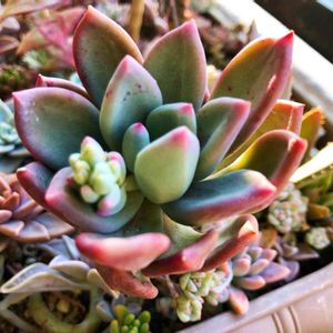 スイートキャンディ🍭 パキベリア属。別名、青星美人、コーネリアス。 ほのかにピンクになっています、花芽が強引に出てきた( >ε<) この後チョンパしました。 子吹きしやすそうなので今後に期待✨ 今日は晴れ、明日から数日天候が崩れるみたい。