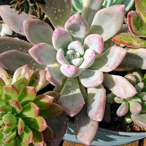 Pachyveria Cornerius ほとんど変化がなく、 水やりした記憶があまりない子だったのですが、 2日前の朝、しわしわになって小さくなっているのを発見‼️ その夜、思いっきり水やり💦 今朝みたら、 元通りにふっくらしていて少し安心😅 強健とはいえ、 たまには目を向けてあげなくっちゃ😆