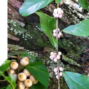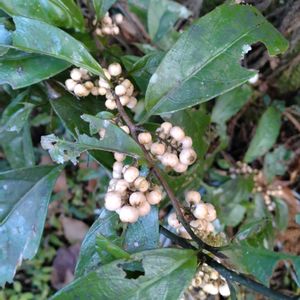 雌雄異株 果期1~2月白い実がつく。千両🔴より地味〜💦花はちょっとかわいい💕