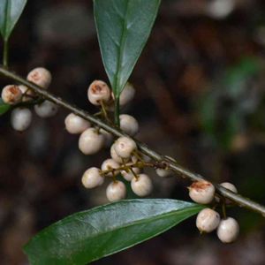 今年の春に名前を教えて頂いたイズセンリョウ。 白い実がなっていました。 サクラソウ科イズセンリョウ属の常緑小低木