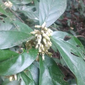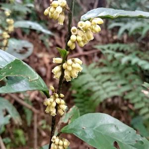 地味なアセビのような花が咲いて🐝がブンブン🎶 千両🔴に似た白い実⚪️がなる。 別名ウバガネモチ 地味だとウバなのね〜💦金持ちならいいか⁉️