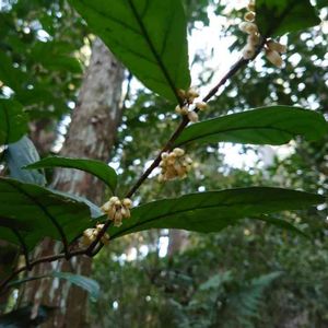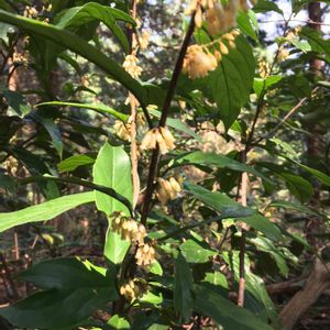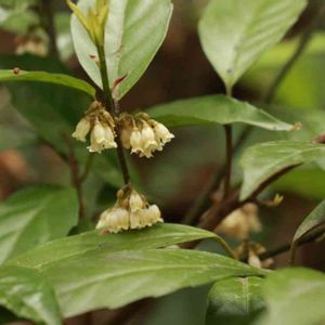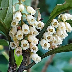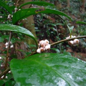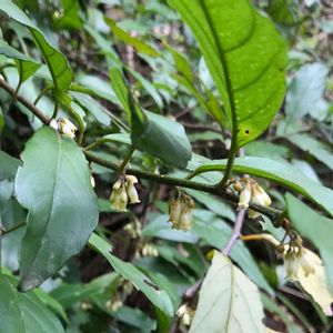 杉の植林帯に自生していました。葉は茶に似ていましたが小さな白い花と小さな白い実が鈴なりになっていました。