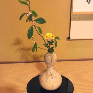 職場のお茶室 伊豆千両と小菊