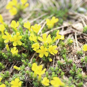キバナハナガタ マット状に広がって 黄色い絨毯のようになるはずだけど まだお花は チラホラと、