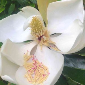 泰山木(たいさんぼく) いつも高いところで咲いていて 通りすがるだけでしたが 今日は低い位置に発見‼︎ アップでみれました〜🤍✨❇︎⭐︎ まっしろ♪😆 蕊⁇が花弁に溢れ落ちていました〜 みなさま今日も元気にまいりましょう🙌😆♬