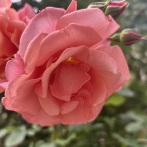病院の帰り道 製菓店で無料解放している小さな薔薇園へ通りかかりついついフラフラ道草 すごくいい香りが漂ってきていたのでどれだどれだとマスク越しに̋ ੯ꔷ̀͡ᓑ\クンクン(私以外誰もいなかったので堂々とクンクン出来ました😆) みーつけた! 名札がついてたので口の中で何回も唱えて覚えできたはずが サンライズ…いやサンセット…なんだっけ??😅 検索したらサンセット・グロウ 名前の通り暖かなサンセットオレンジの素敵なコ💕 甘ーいフルーティーな香りが園内全体に漂って得した気分のひとときでした☺️