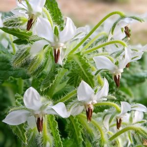 こんにちは♪ ホワイトボリジ 今年もこぼれ種のボリジ咲き始めました🎶 下手に触ると痛いです😅