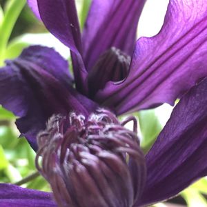 植木鉢のクレマチス、 これも場所を変えたら、たくさん 花を咲かせました。💜 花後のシベも素敵です✨