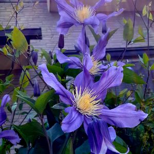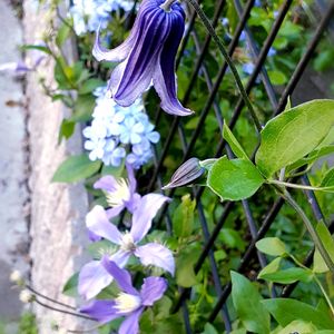 クレマチス ローグチと龍安 奥にはルリマツリ(プルンバーゴ) 涼し気に……… (実は、西側の過酷な場所 大丈夫(๑•_•๑`)カナー) (*•̀ᴗ•́*)و ̑̑がんばれーお花🙏