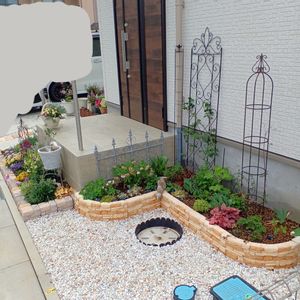 DIYで玄関前改造計画❕② 花壇作りの次に、こちらのスペースを砂利敷きに。 防草シートもしっかりと仕込みました。 初めての割にはまあまあの出来かなと❕笑
