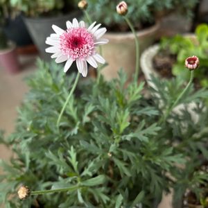 こんにちは╰(*´︶`*)╯♡ マーガレットあずきちゃん🫘 可愛らしいお花、一般のマーガレットよりお花小さめ、真ん中濃いめのピンクがかわいの💕🫘 室内で越冬中、無加温部屋ですが室内は暖かく、春と勘違いしてお花が咲き始めました\(//∇//)\🌸 4枚目、こちらはダークあずきちゃんか?あずきちゃんか?わからなくないましたが蕾はまだです😁 他にも挿し木にしてる苗が何鉢か😁 どれかダークあずきちゃんでありますように🙏 5枚目 以前投稿のカランコエ 胡蝶の舞さん☺️ お〜ば〜け〜だ〜ぞ〜👻のポーズのままお花ほぼ咲きました🧡 あずきちゃんと並んでます😍 11時現在I℃ ここからどんどん気温下がっていきます😭 4℃だったのはほんのI時間弱でほとんどがマイナス気温 昨日まで暖かかったので陽射しもない分肌寒く感じます(おうちの中は春ですが外はね冬❄️〜) 3月初めにしてはそれでも暖かいのかな😭 🌫️/🌨️🌫️ 4℃/−4℃ 🌪️も強めです😌 日向ぼっこはお預け😭